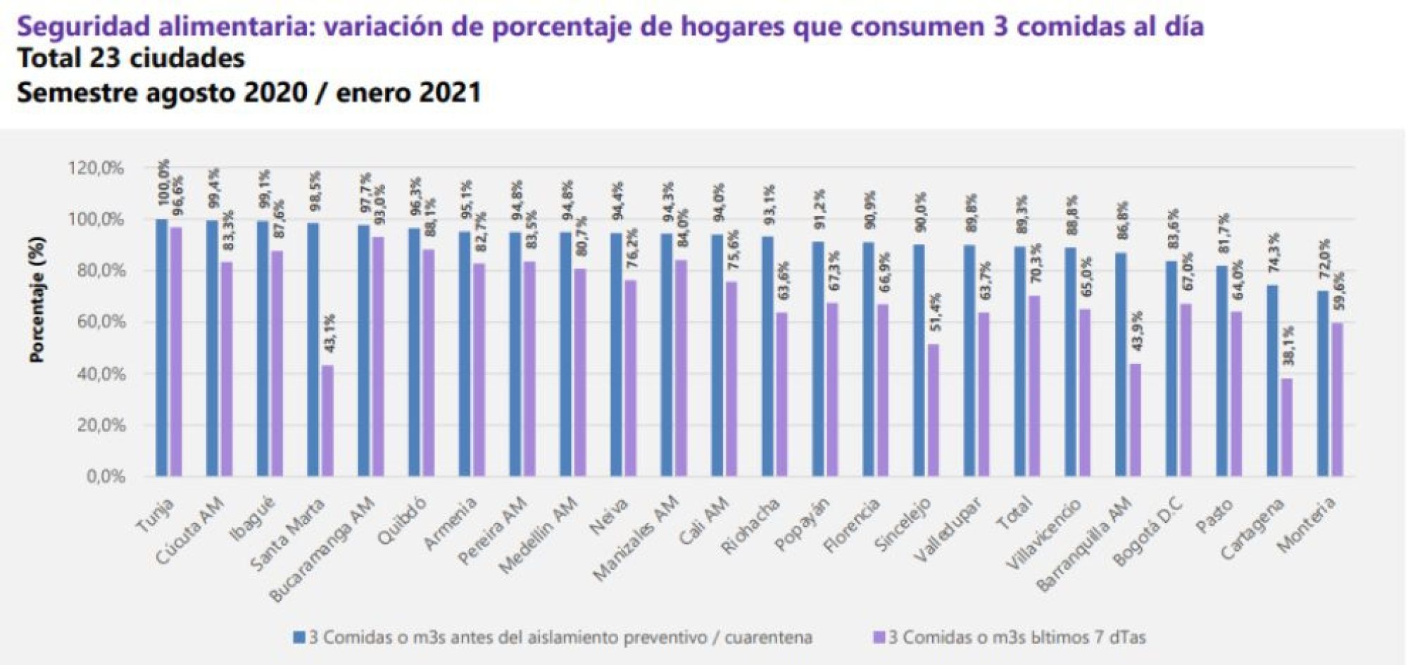 Sin embargo, este objetivo parece hoy una utopía, puesto que la Organización de Naciones Unidas (ONU), señaló que cerca de 193 millones de personas de 53 países o territorios sufrieron hambre en “niveles de crisis o peores”. En América Latina y el Caribe, son 60 millones de personas sin alimentación asegurada, entre estos niños que tienen desnutrición crónica y aguda. Según Juan Carlos Buitrago, Director ejecutivo del Banco de Alimentos de Colombia, entre el 10 y el 15 por ciento de los menores en Colombia sufren desnutrición crónica.